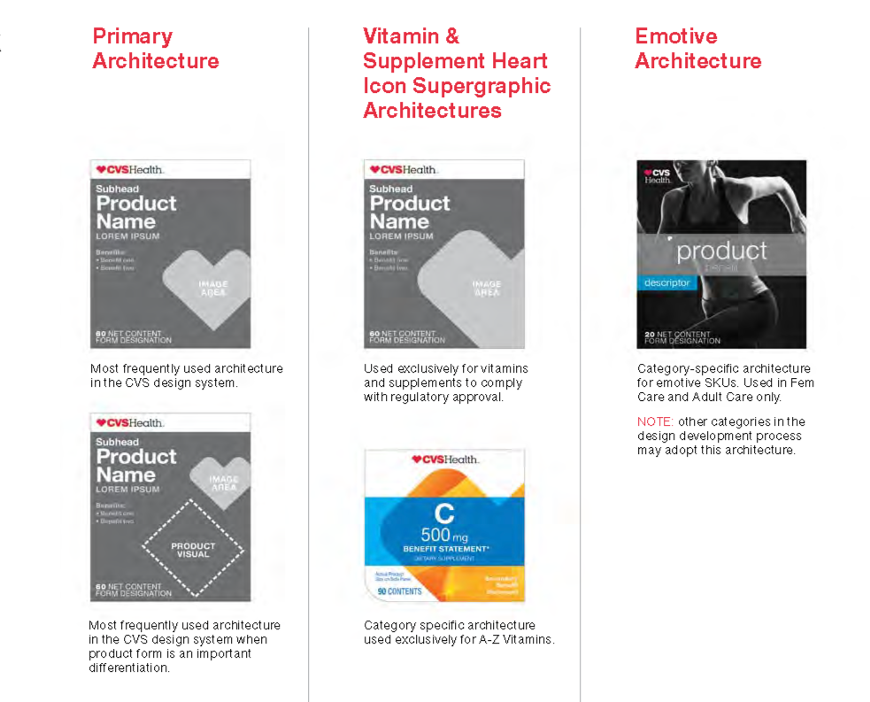 This was a complex initiative where I balanced the expectations of our cross functional team with my convictions on creating a new contemporary design. Through numerous consumer tests my CVS business partners and I aligned on a design that met numerous objectives including a nod to the enterprise brand position and identity.
